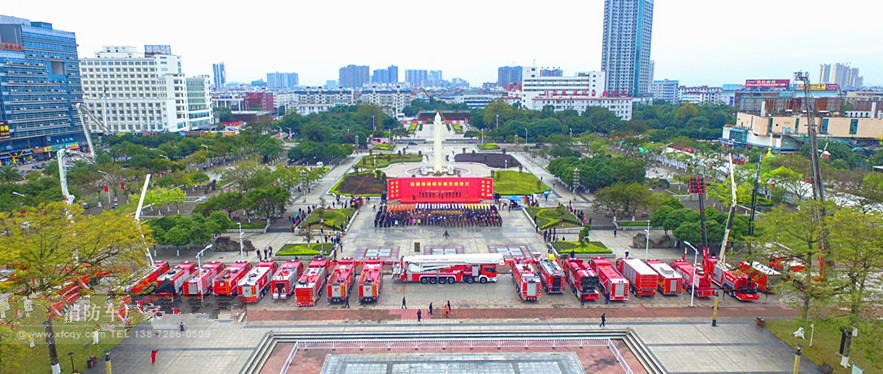 這批消防車為我公司專業生產打造而成,部分功能未定制功能。在交車過程中18輛新購置特種消防車依次排開,身著火焰藍冬常服、橙色救援服、藏藍滅火服的消防指戰員、消安委成員單位、重點單位等600余人整齊列隊,場面十分隆重,交車儀式在一片歡慶的氛圍中正式開始。