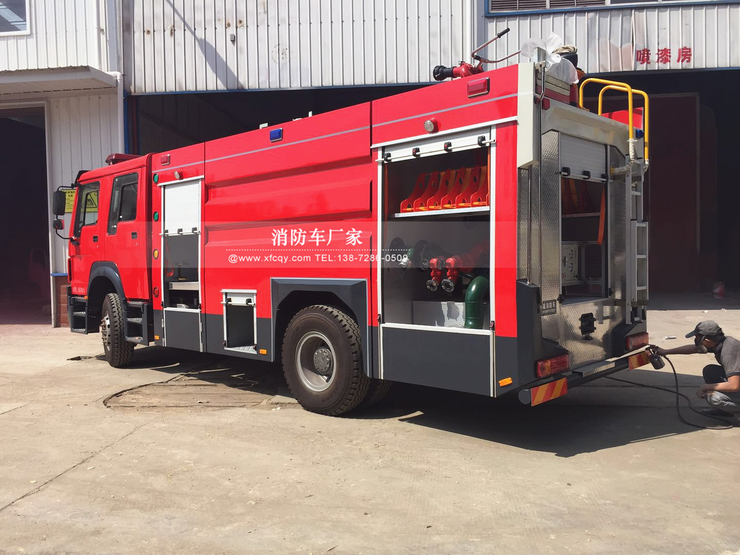 泡沫消防車是指裝配有水泵、泡沫液罐、水罐以及成套的泡沫混合和產(chǎn)生系統(tǒng),可噴射泡沫撲救易燃、可燃液體火災(zāi),以泡沫滅火為主,以水滅火為輔的滅火戰(zhàn)斗車輛。泡沫消防車是在水罐消防車的基礎(chǔ)上通過設(shè)置泡沫滅火系統(tǒng)改進(jìn)而成的,具有水罐消防車的水力系統(tǒng)及主要設(shè)備,根據(jù)泡沫混合的不同類型分別設(shè)置泡沫液罐、泡沫比例混合器、壓力平衡閥、泡沫液泵、泡沫槍炮等。泡沫消防車特別適用于撲救石油及其產(chǎn)品等易燃液體火災(zāi),既可獨立撲救火災(zāi),也可向火場供水和供泡沫混合液。