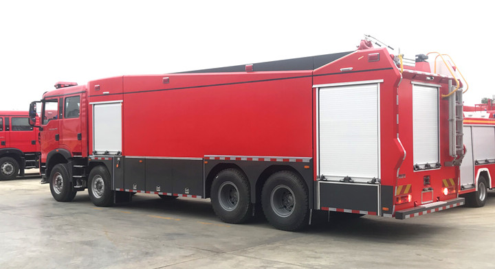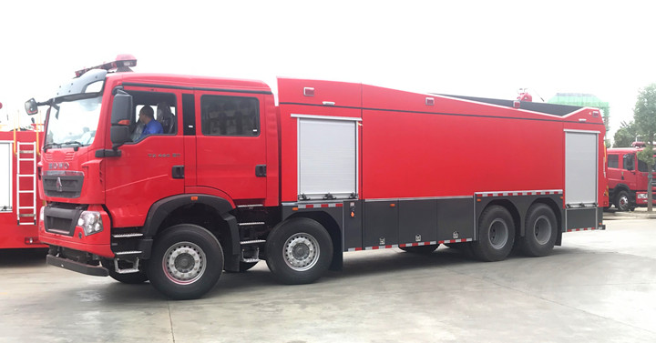 除了五十鈴消防車底盤與東風消防車底盤、以及小眾的福田、上汽紅巖、解放、北汽、陜汽底盤等等;國內越來越多的消防車改裝上裝企業(yè)采用中國重汽汕德卡、HOWO-T系底盤,中國重汽產(chǎn)品在消防展上逐步嶄露頭角,展示了中國重汽作為“進口替代”者的實力。特別是專職消防隊與企業(yè)消防隊選擇的多起來了。是的重汽消防車越來越暢銷;今天我們?yōu)榇蠹医榻B一款采購重汽T5G車身全新打造的一款前四后八泡沫消防車。
