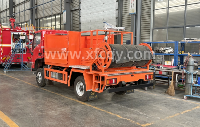 東風華神T5抑塵車等車型明確將推火鏟與滅火毯集成于后部作業平臺,作為核心滅火組件。
