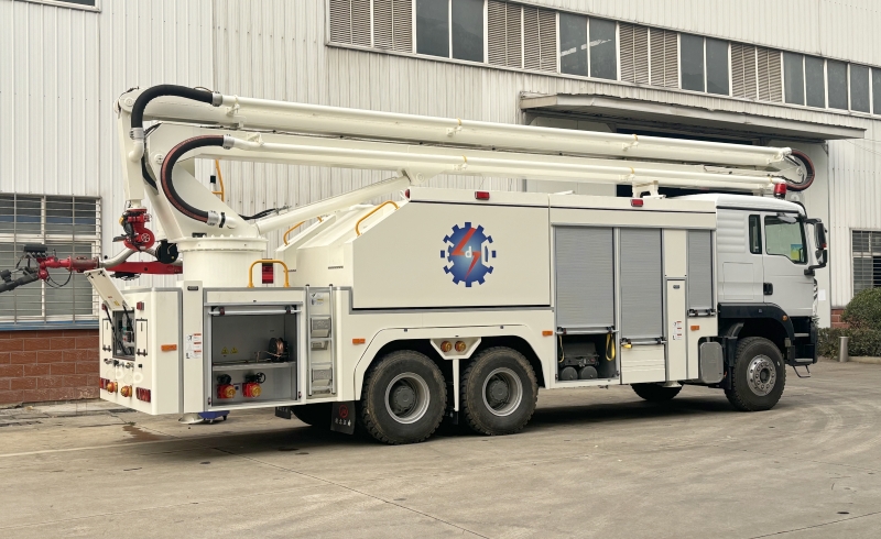 案例:某30層寫字樓火災(zāi)中,該車通過(guò)25米臂架直達(dá)起火樓層,配合遙控水炮快速壓制火勢(shì),避免人員傷亡。