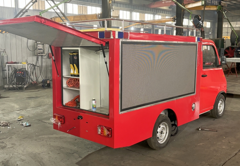 小型電動巡邏宣傳消防車的上市,是消防裝備領域的一次創新突破。它以小巧靈動的身姿、多元集成的功能、綠色經濟的優勢,為基層消防安全提供了全新解決方案。在未來,隨著技術的不斷迭代與應用場景的持續拓展,這款“全能消防衛士”必將在更多地方發光發熱,為構建平安和諧社會貢獻重要力量。