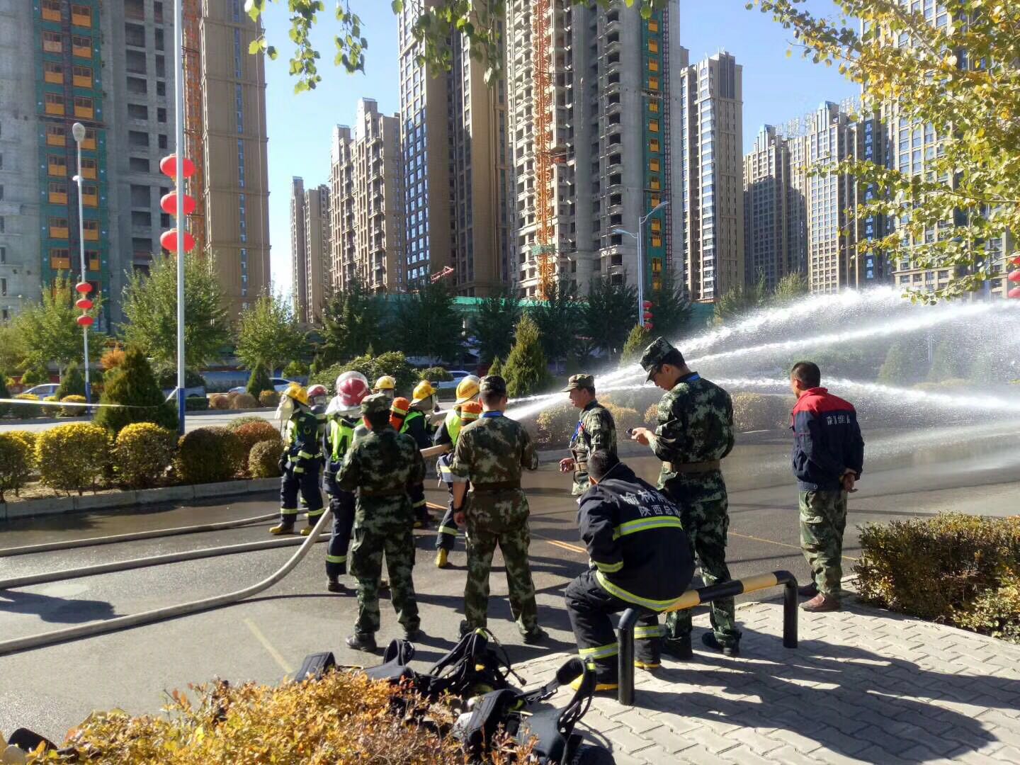 我公司與改革后的消防救援局進行首場水罐消防車聯合演練