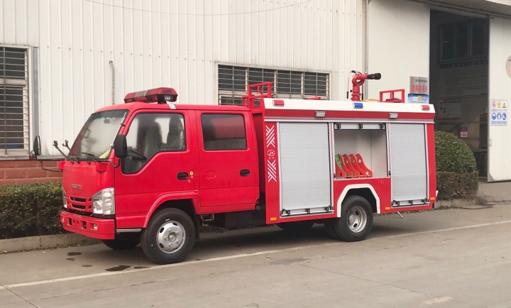 五十鈴2.5噸水罐消防車采用五十鈴QL1070BUKWY底盤改裝而成。整車由消防員乘員室和車身兩大部分組成,乘員室為原裝雙排,可乘坐2+3人,該車為內(nèi)倉罐結(jié)構(gòu),車身前部為水罐+器材箱,后部為泵房。載液罐體為優(yōu)質(zhì)碳鋼,與底盤采用彈性連接,載水2000kg,裝備了上海雄真消防設(shè)備有限公司生產(chǎn)CB10/20-XZ型消防泵,額定流量30L/S,車頂安裝成都威斯特消防機(jī)械有限公司生產(chǎn)的PS20W型車用消防炮。