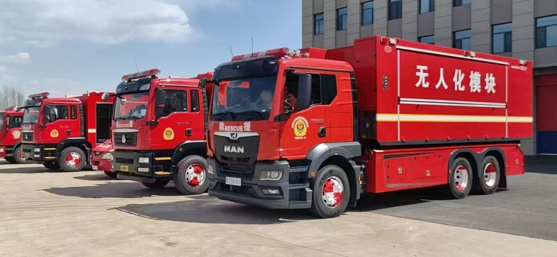 無人機(jī)與地面指揮中心實(shí)時(shí)信息聯(lián)動(dòng),配套專用消防車作為貯存和供給平臺(tái),適用于高層建筑、化工火災(zāi)等場(chǎng)景。
