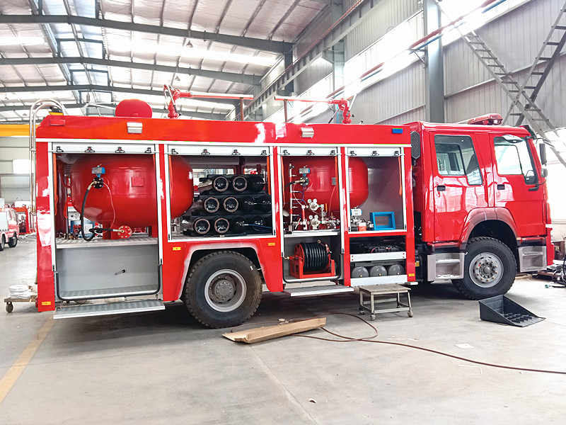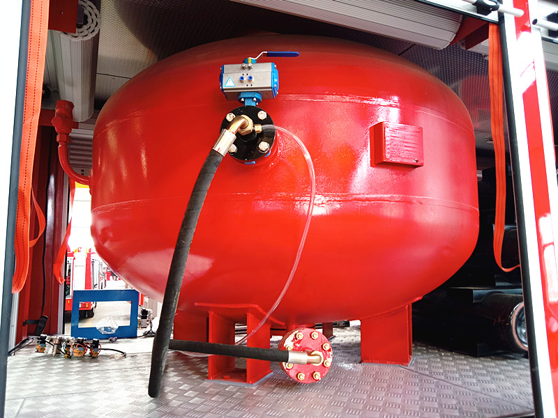 干粉車的布局相比于其他常規車型就要更加的復雜了、需要用到真空壓力的干粉罐、氮氣瓶組、以及相關的管道系統、友鏈這些東西才能將干粉通過細長細長的干粉槍給打出來、正常情況下它的射程距離也是相對水罐要小的、盡管壓力相當大。但是畢竟是干燥的粉劑、再者而言、盡管射距不遠。但是屬于電力火災的克星、可以有效的進行破滅、甚至杜絕它的再次復燃。是非常強大的!