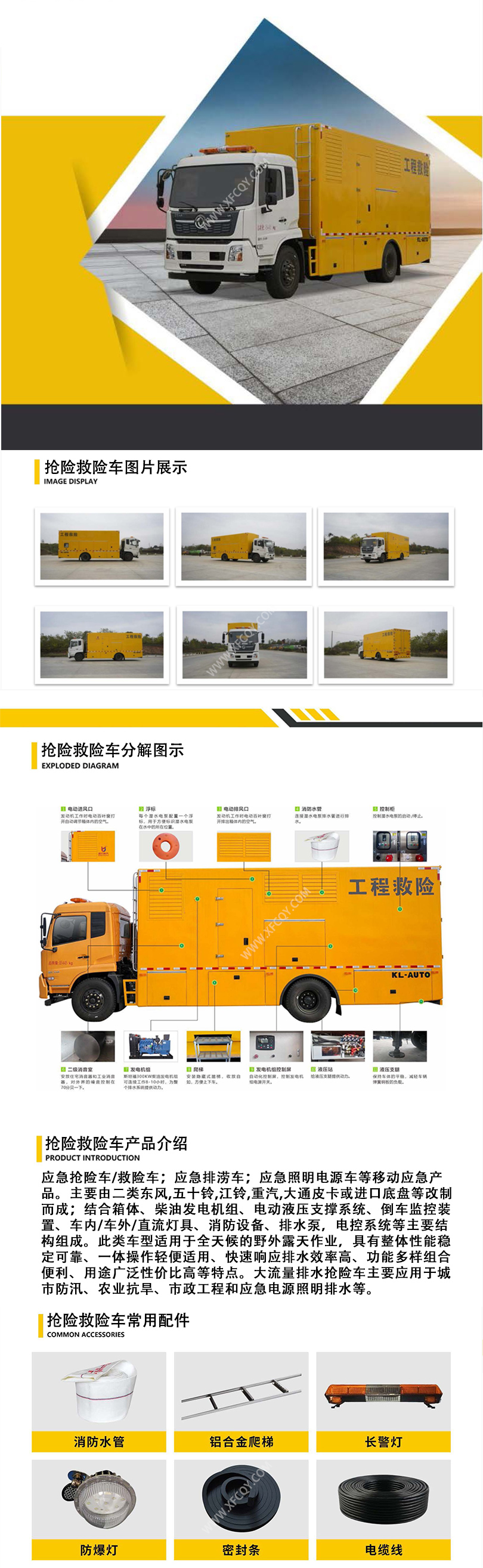 1.該車主要用于應(yīng)急搶險救援,主要專用裝置為發(fā)電機、設(shè)備柜;2.隨原車選裝鋁輪、輪罩;3.選用發(fā)動機最大凈功率為130kw,ABS型號:YF8,生產(chǎn)企業(yè):武漢元豐汽車電控系統(tǒng)股份有限公司;4.后橋速比為4.875時,最高車速為120km/h;后橋速比為4.1時,最高車速為140km/h;5.選裝直接供電式ETC車載裝置;6.該車配備汽車事件數(shù)據(jù)記錄系統(tǒng)(EDR);7.照明燈僅駐車作業(yè)狀態(tài)下使用.