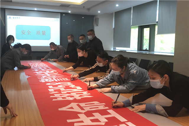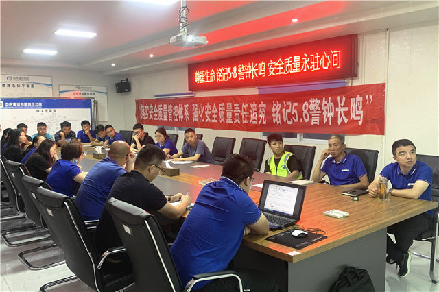 各活動(dòng)現(xiàn)場(chǎng),通過回顧“5·8安全質(zhì)量警示日”由來、重溫安全質(zhì)量警示片、安全質(zhì)量宣誓、安全知識(shí)宣講等多種形式的安全教育強(qiáng)化全員安全生產(chǎn)意識(shí)。各安全負(fù)責(zé)人結(jié)合當(dāng)前疫情防控要求進(jìn)行詳細(xì)部署,確保常態(tài)化疫情防控、復(fù)工復(fù)產(chǎn)兩不誤。
