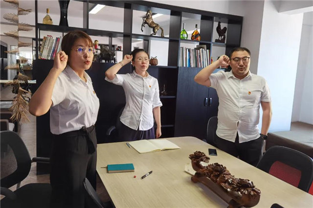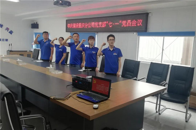 面對鮮紅的黨旗,中慶全體黨員共同高舉右拳,再次莊嚴宣誓:“我志愿加入中國共產黨……隨時準備為黨和人民犧牲一切,永不叛黨。”重溫入黨初心,牢記使命,在錚錚誓言中再燃奮斗激情。