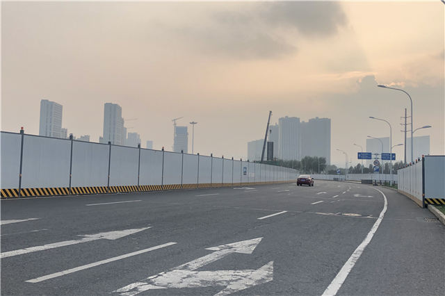 ??高標準文明施工,采取有效措施將施工區域和非施工區域分隔,在施工區域四周設置連續、密閉高標準裝配式圍擋。自動化洗車、霧炮、揚塵檢測等多種措施防止揚塵,為民便民