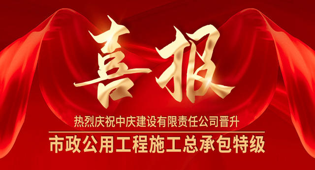 成功升特!中慶建設(shè)有限責(zé)任公司獲批市政公用工程施工總承包特級(jí)資質(zhì)