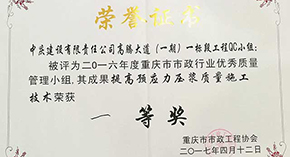 ?近日,在重慶市2016年度市政行業(yè)優(yōu)秀QC小組成果評(píng)選會(huì)上,由中慶建設(shè)重慶分公司申報(bào)的《提高預(yù)應(yīng)力壓漿質(zhì)量施工技術(shù)》成果榮獲一等獎(jiǎng)。